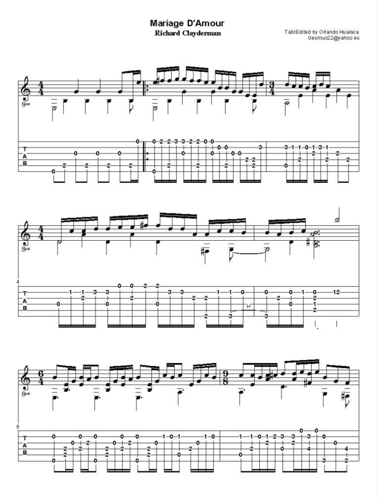 Marriage D'Amour Richard Clayderman Partitura de guitarra & TAB