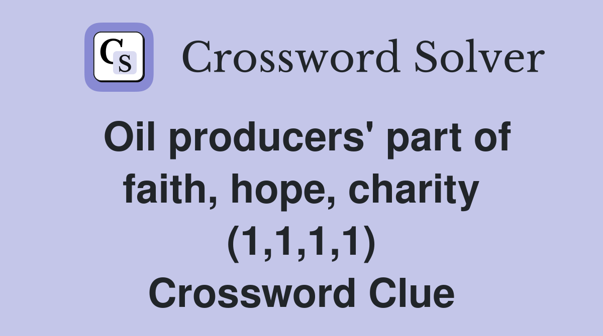 Oil producers' part of faith, hope, charity (1,1,1,1) Crossword Clue