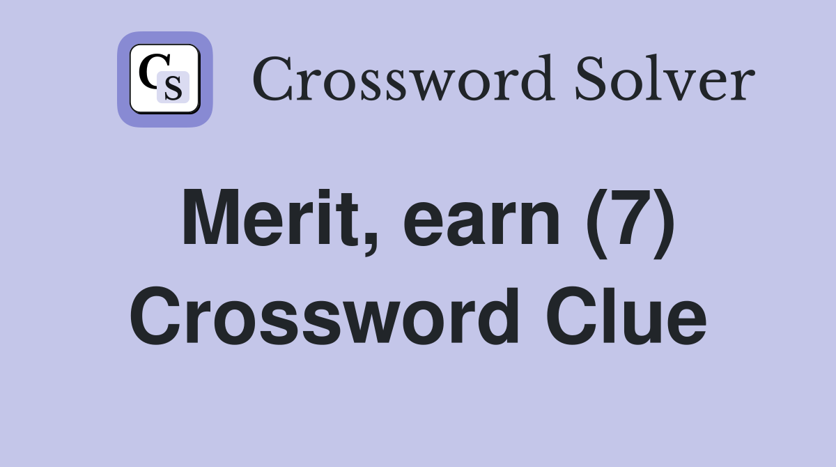 The crossword solver finds answers to classic crosswords and. We believe the most likely. The most common solutions for the crossword clue merit are earn with 4 letters, rate with 4 letters, value with 5 letters, deserve with 7. Today's crossword puzzle clue is a quick one: