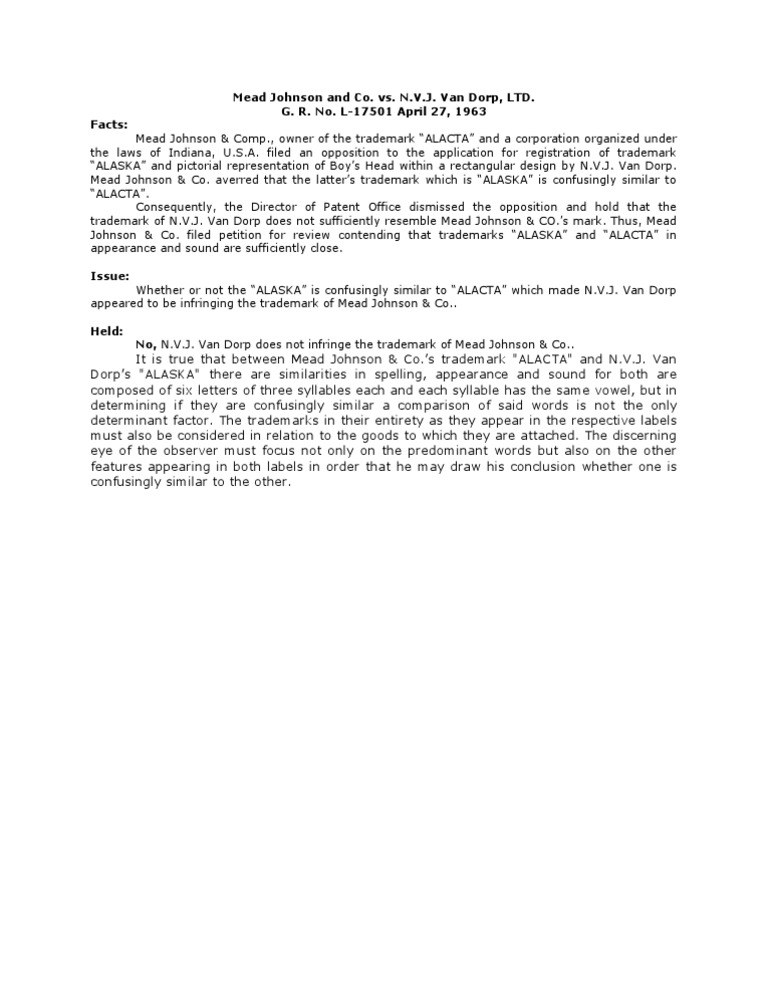 Mead Johnson and Company PDF Trademark Intellectual Property Law