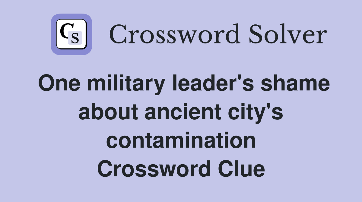 We found 5 answers for the crossword clue military leader. A further 8 clues may be related. The crossword solver finds answers to classic. Find the answer to the crossword clue military leader with 7 letters. The crossword solver found 30 answers to military leader, 7 letters crossword clue.
