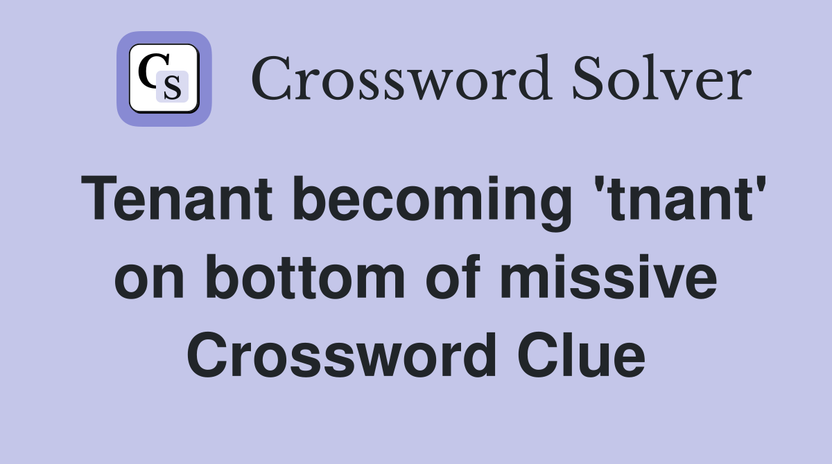 Tenant 'tnant' on bottom of missive Crossword Clue Answers