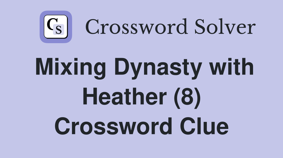 Mixing Dynasty with Heather (8) Crossword Clue Answers Crossword Solver