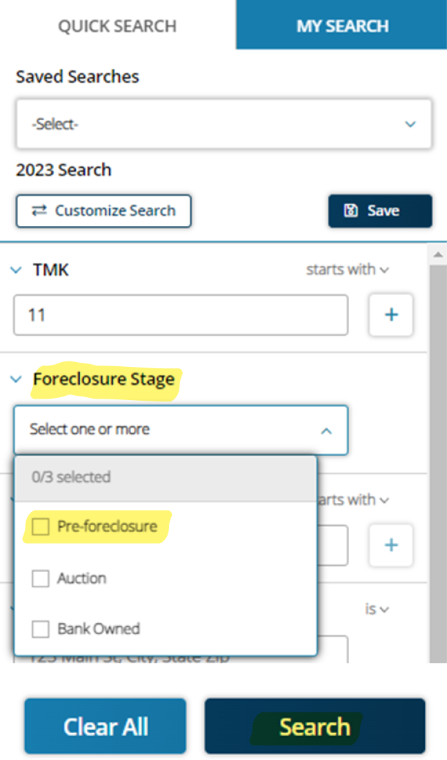 Foreclosure Search in Realist HiCentral MLS Knowledge Base