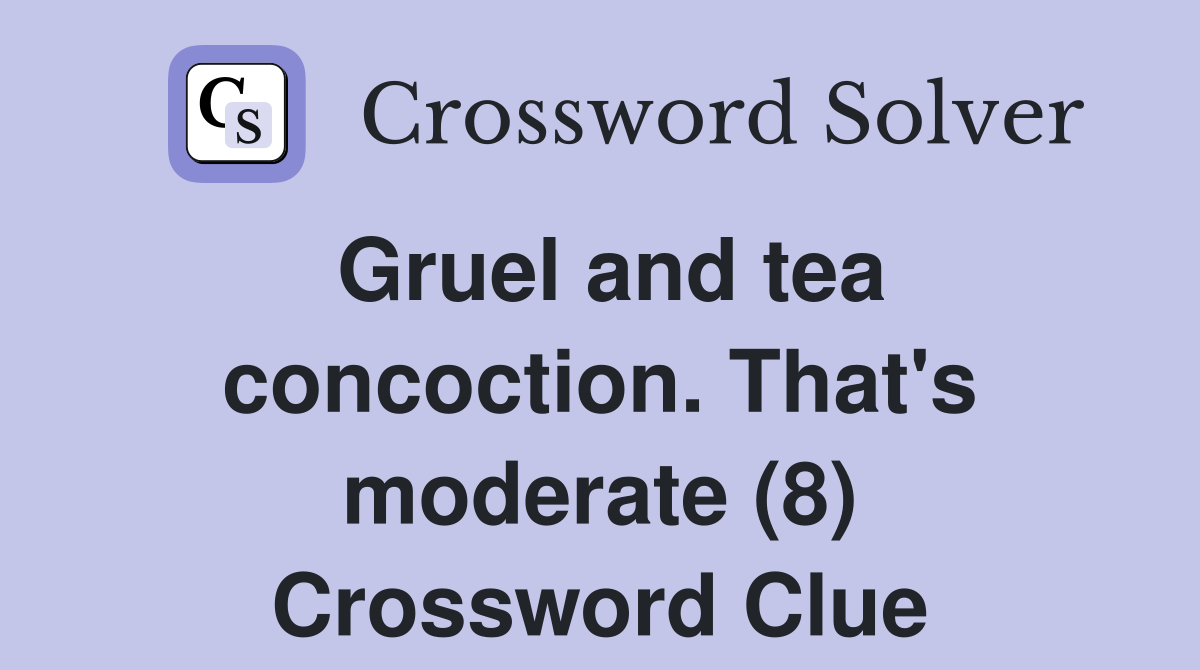 Gruel and tea concoction. That's moderate (8) Crossword Clue Answers