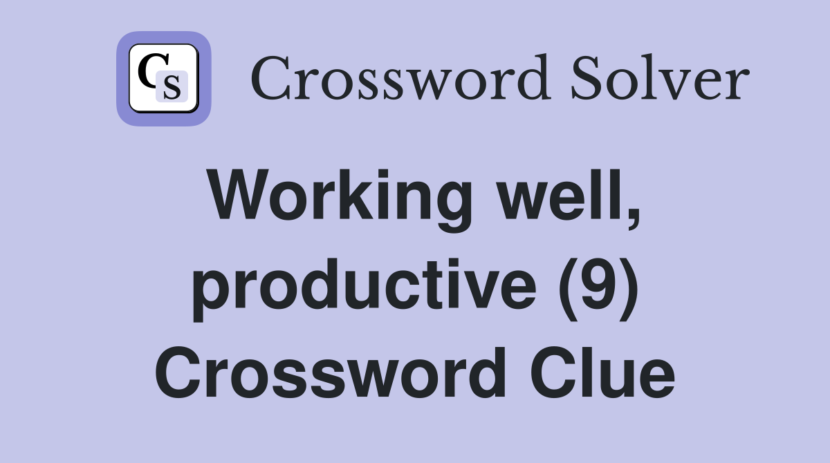 Working well, productive (9) Crossword Clue Answers Crossword Solver