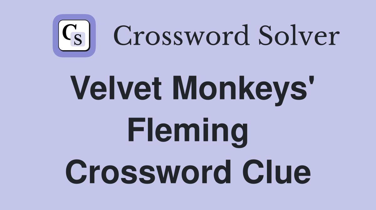Velvet Monkeys' Fleming Crossword Clue Answers Crossword Solver