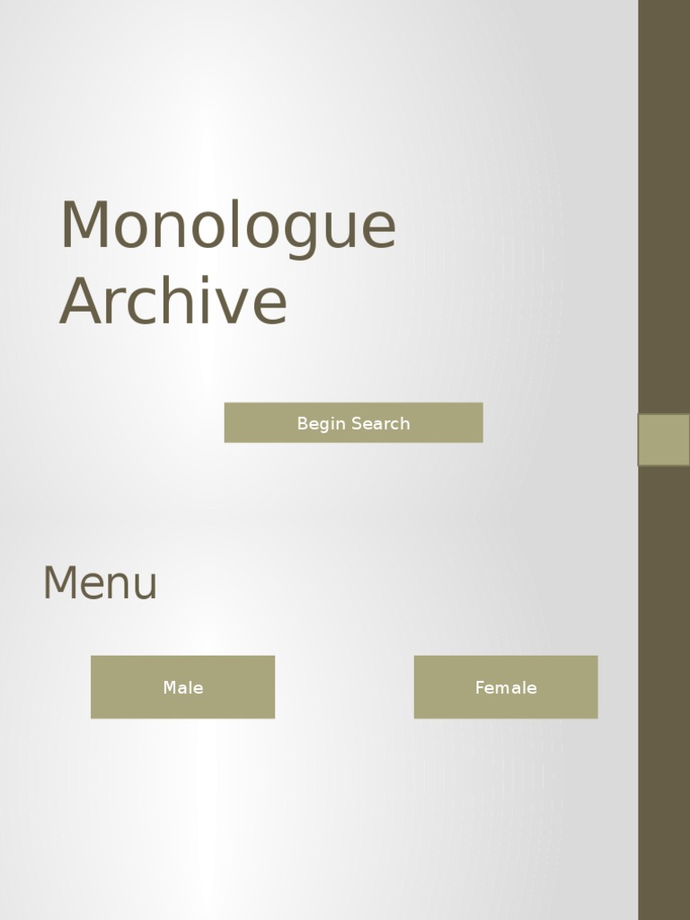 Browse and search for monologues by female characters from contemporary plays by various playwrights. Whether you want to nail your next audition or just better your craft, opening monologue is an invaluable resource in your acting toolkit. A huge archive of monologues for actors. Here you can search monologues from movies, plays, television and books according to gender, source material,.