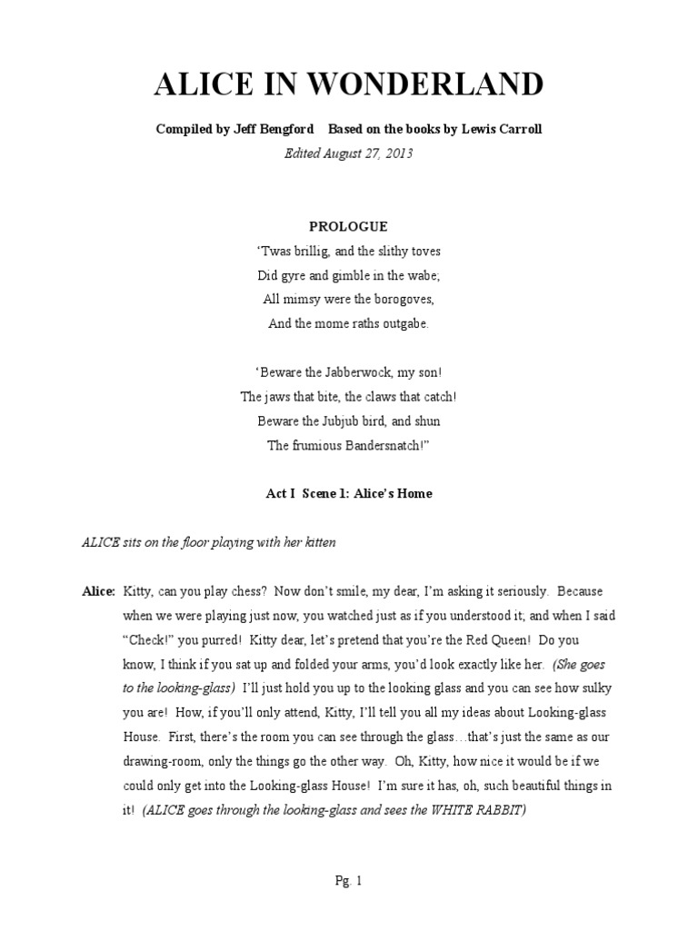 Alice in Wonderland script Lewis Carroll English Children's Novels