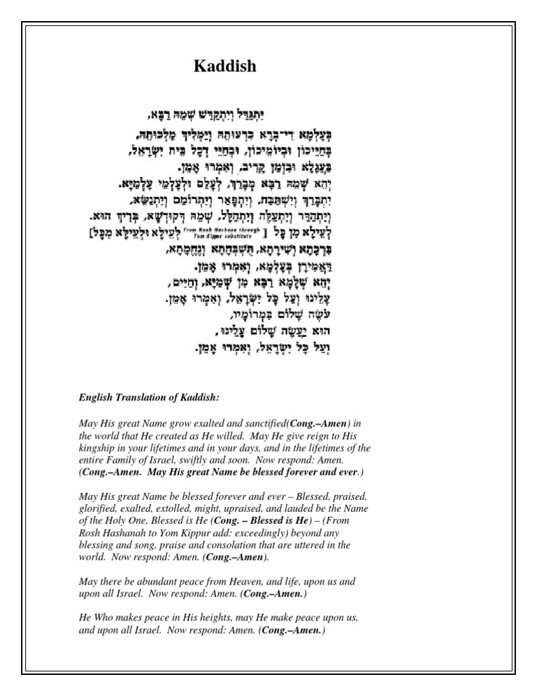 That is, what it feels like individually, what it means as an act of. What i have tried to do is to write what the act of saying kaddish means to me. Mourner’s kaddish may his great name grow exalted and sanctified in the world that he created as he willed. Mourner’s kaddish translation transliteration exalted and hallowed be god's.