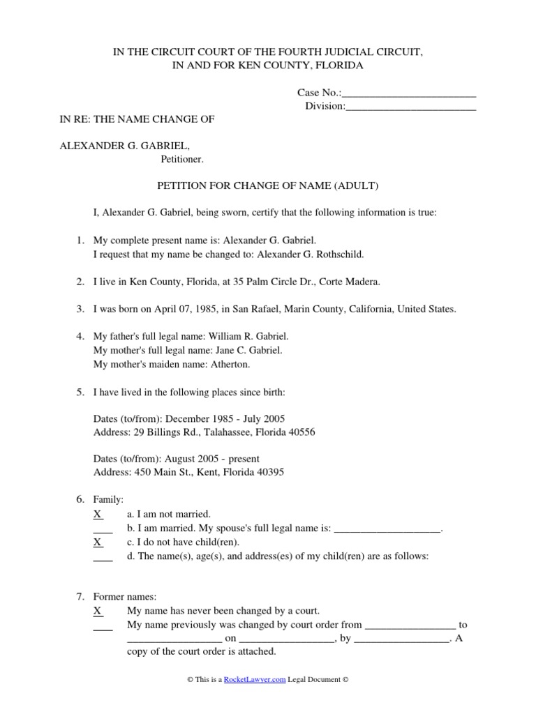 Free FL Name Change Petition & Order Rocket Lawyer
