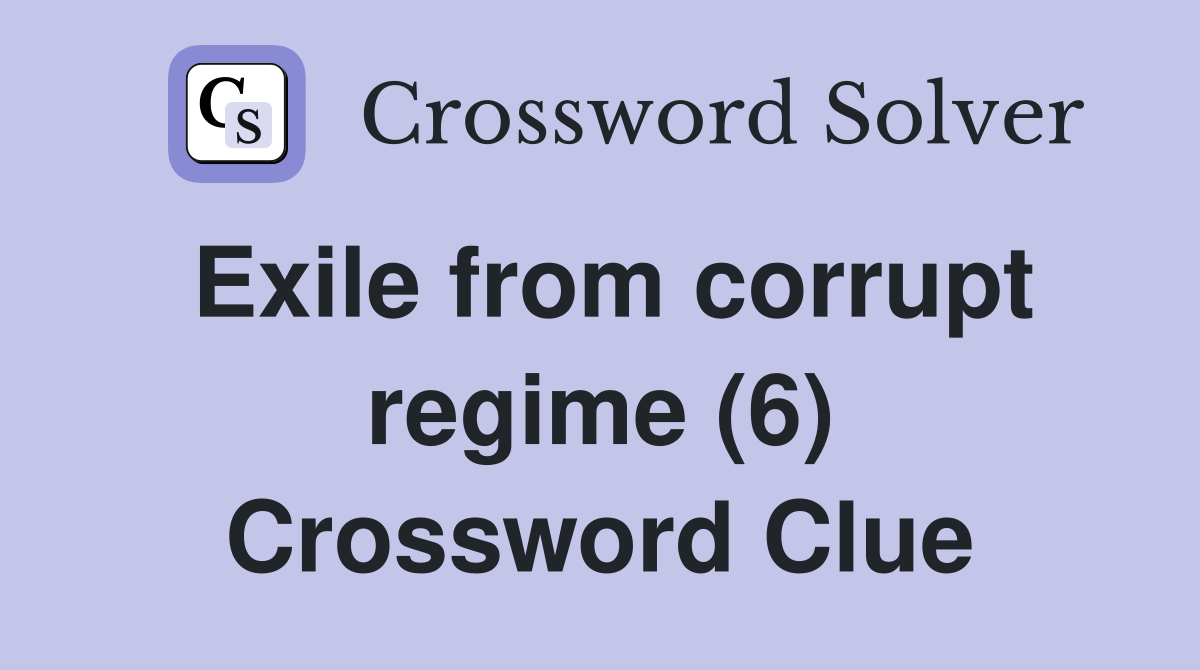 Exile from corrupt regime (6) Crossword Clue Answers Crossword Solver