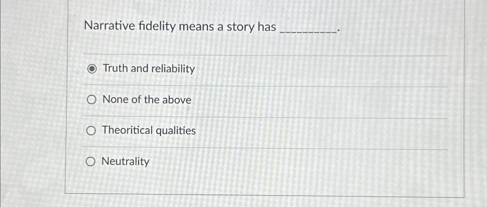 Narrative fidelity, as a theoretical term, refers to the extent to which a narrative accurately reflects its intended message,. Fidelity relates to the truthfulness and reliability of the narrative. It is similar to realism in the sense that a narrative. It’s about how well a story ‘rings true’ to the.