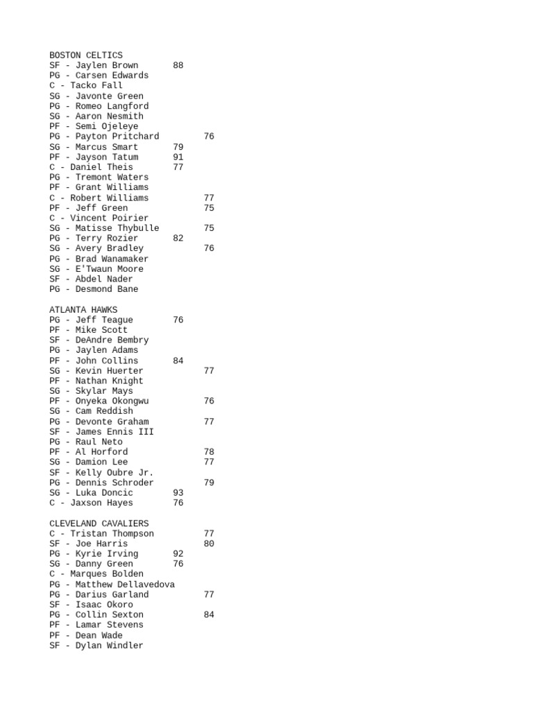Nba Roster Draft PDF Sportspeople Relocated National Basketball