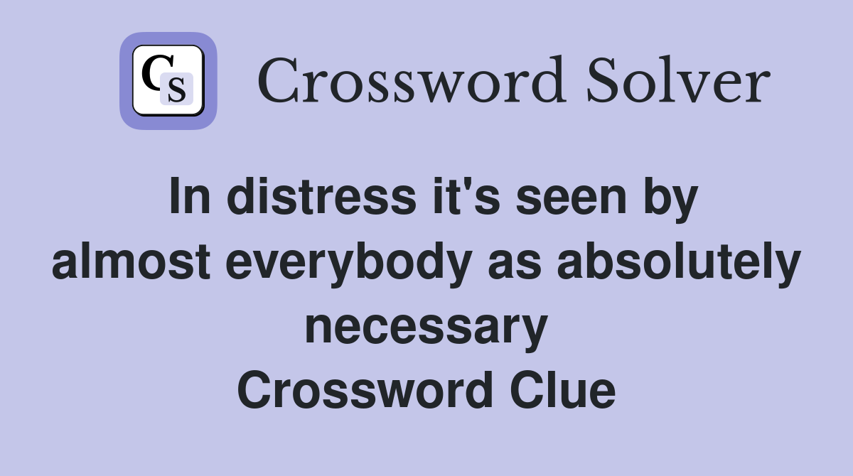 The crossword solver found 60 answers to necessary, 4 letters crossword clue. The most common solutions for the crossword clue necessary are vital with 5 letters, needed with 6 letters, needful with 7 letters,. The most popular crossword solutions for necessary are vital (5 letters), needed (6 letters), needful (7 letters), essential (9 letters). We will try to find the.