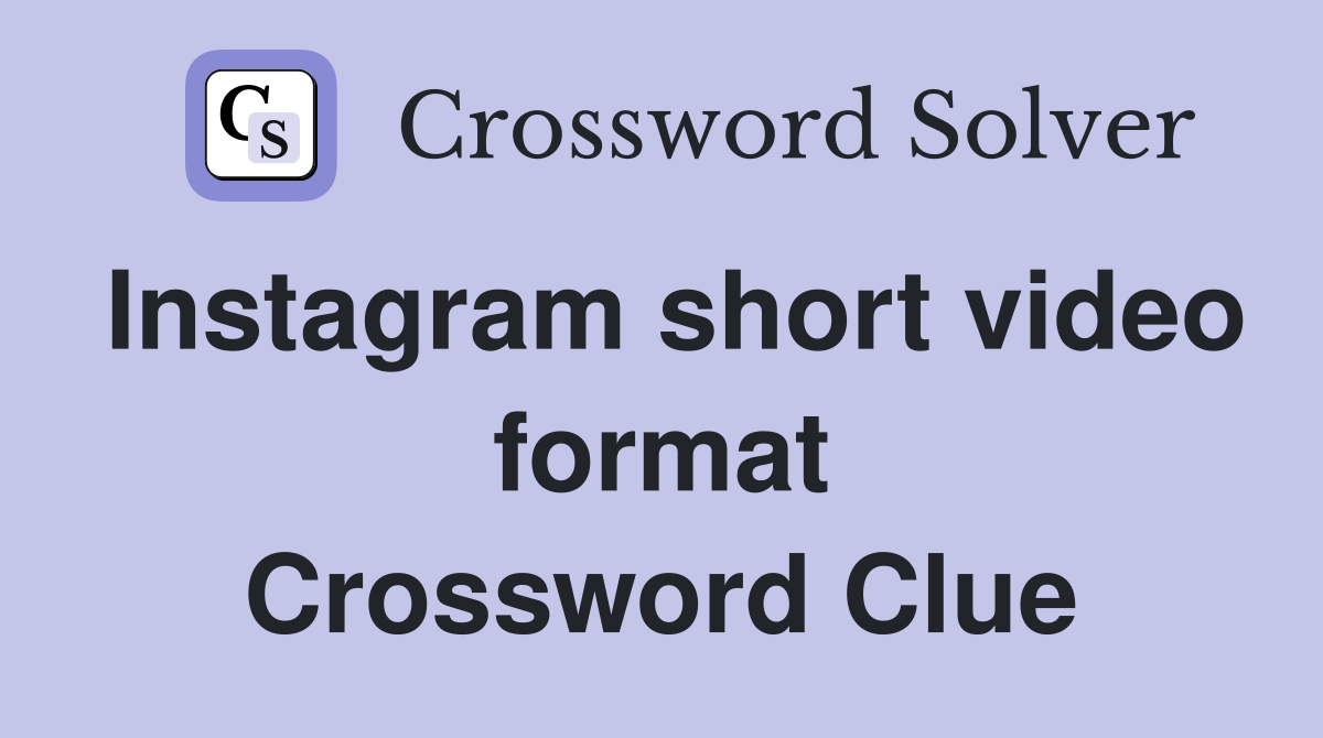 Instagram short video format Crossword Clue Answers Crossword Solver