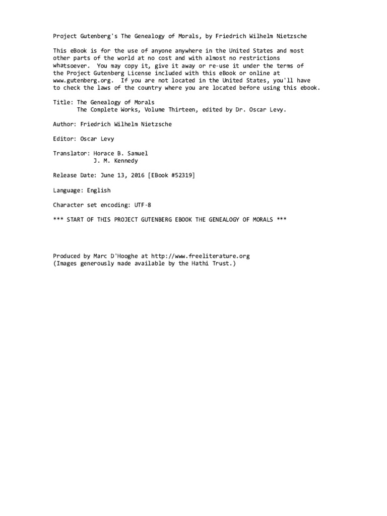 Nietzsche, metaphysics, philosophy collection opensource language english item size 351.1m The genealogy of morals by friedrich wilhelm nietzsche is a philosophical polemic written in the late 19th century. It shows him using philosophy, psychology, and classical. Friedrich nietzsche is one of the most influential thinkers of the past 150 years and on the genealogy of morality (1887) is his most..