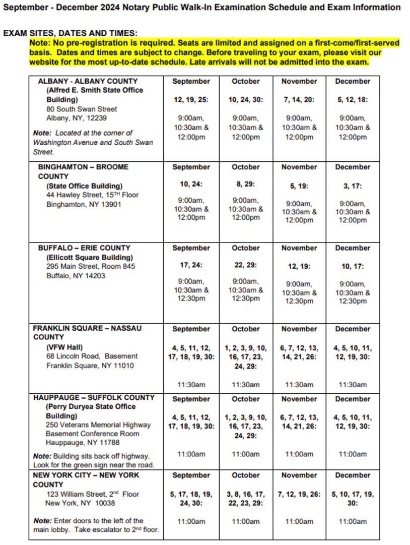 Pass the new york state notary public examination. Current schedule of notary public exams at testing centers across new york state. Nys attorneys and court clerks of the unified court system are exempt from the. Application form, schedule of exam. Exam sites, dates and times: