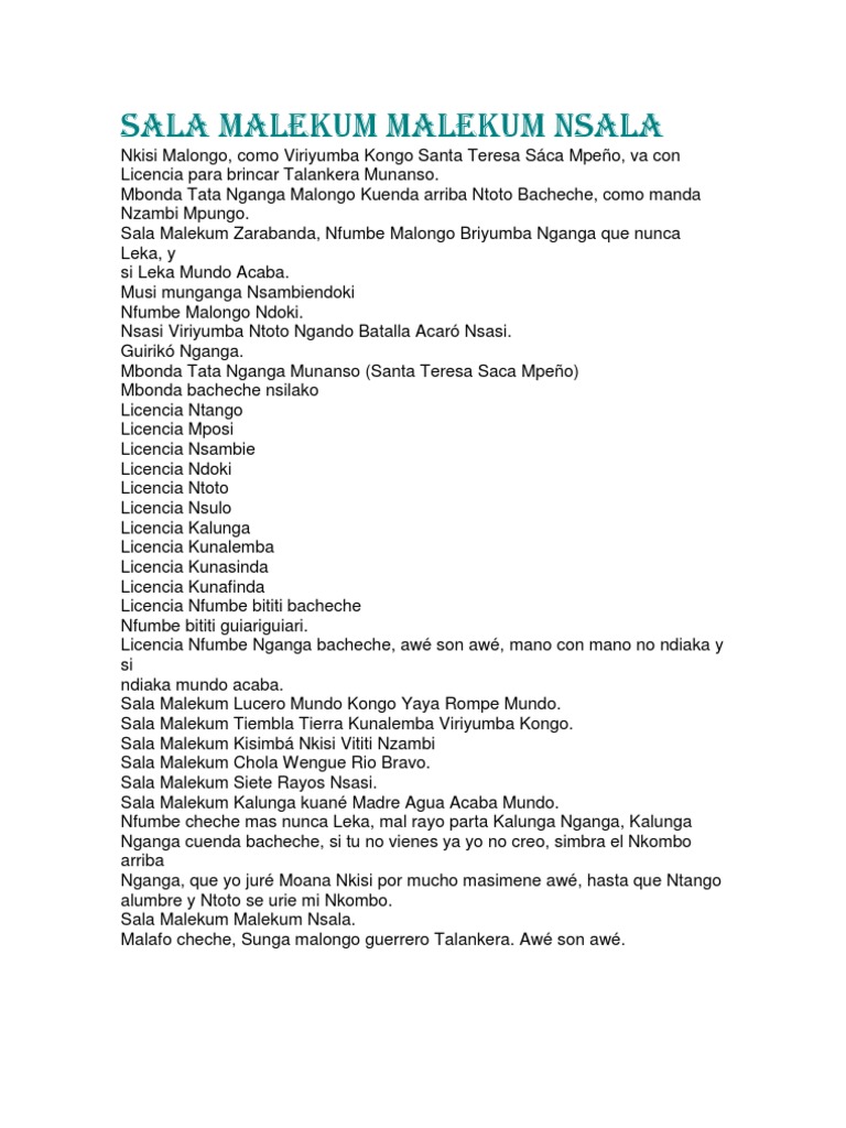 Que Significa Nsala Malekun Salam Alaikum" PDF Religiones