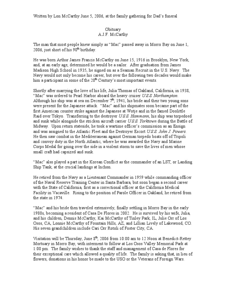 A Veteran's Obituary Battle Of Midway United States Navy Free 30