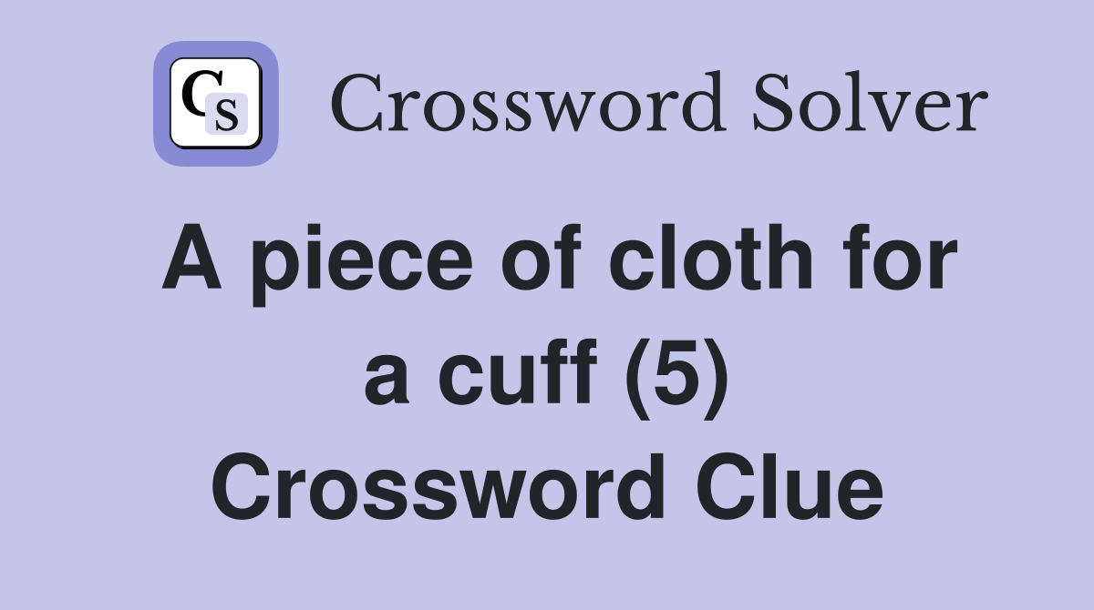 A piece of cloth for a cuff (5) Crossword Clue Answers Crossword Solver