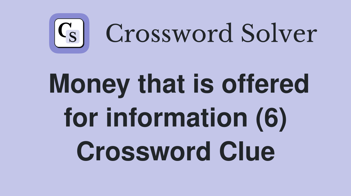 Money offered for information (6) Crossword Clue Answers Crossword