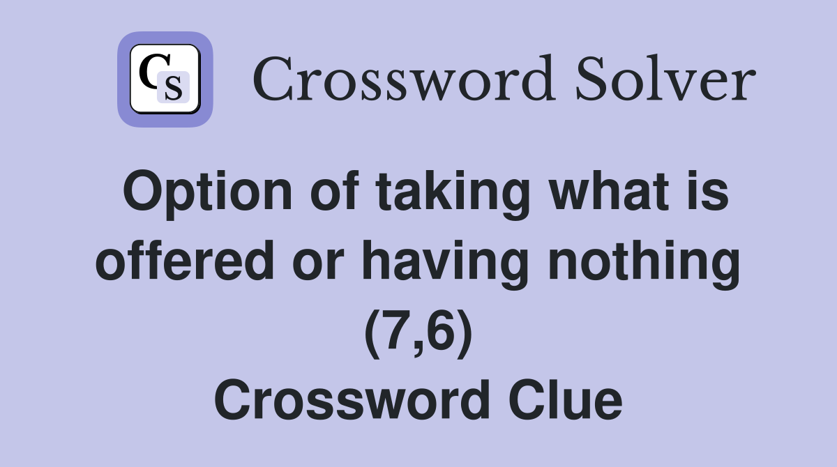 Option of taking what is offered or having nothing (7,6) Crossword