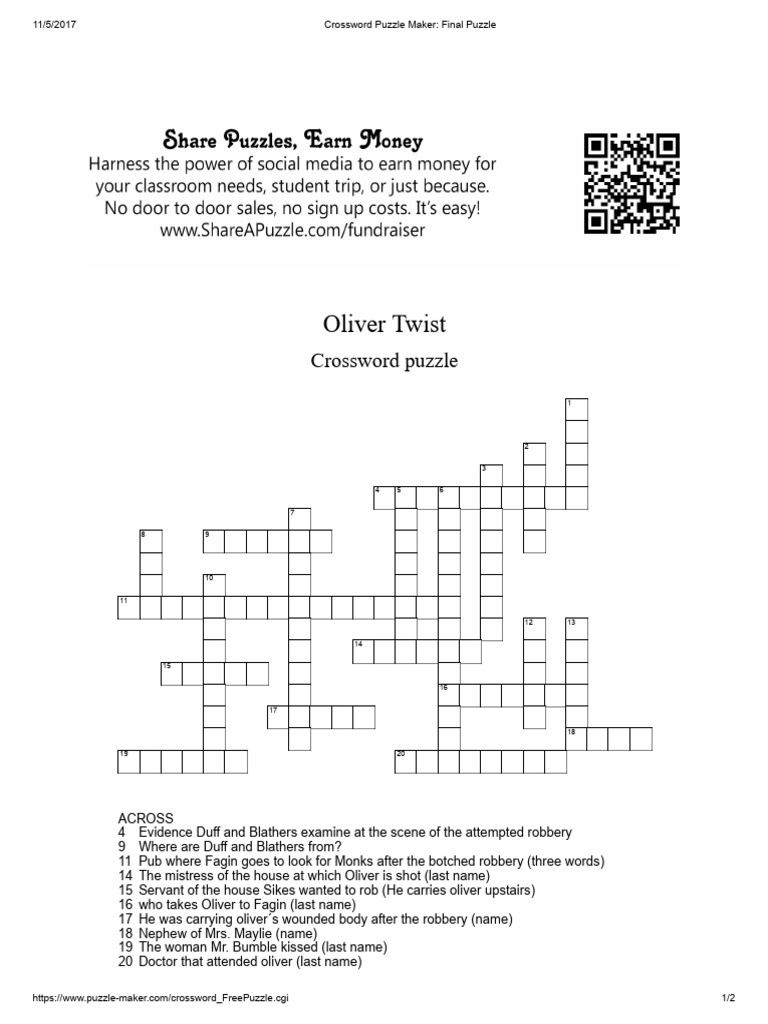 The crossword solver finds answers to classic. Here are the possible solutions for oliver twist, for one clue. Oliver twist, for one is a crossword puzzle clue that we have spotted over 20 times. We have 4 solutions to the crossword puzzle oliver twist, for one. There are related clues (shown.
