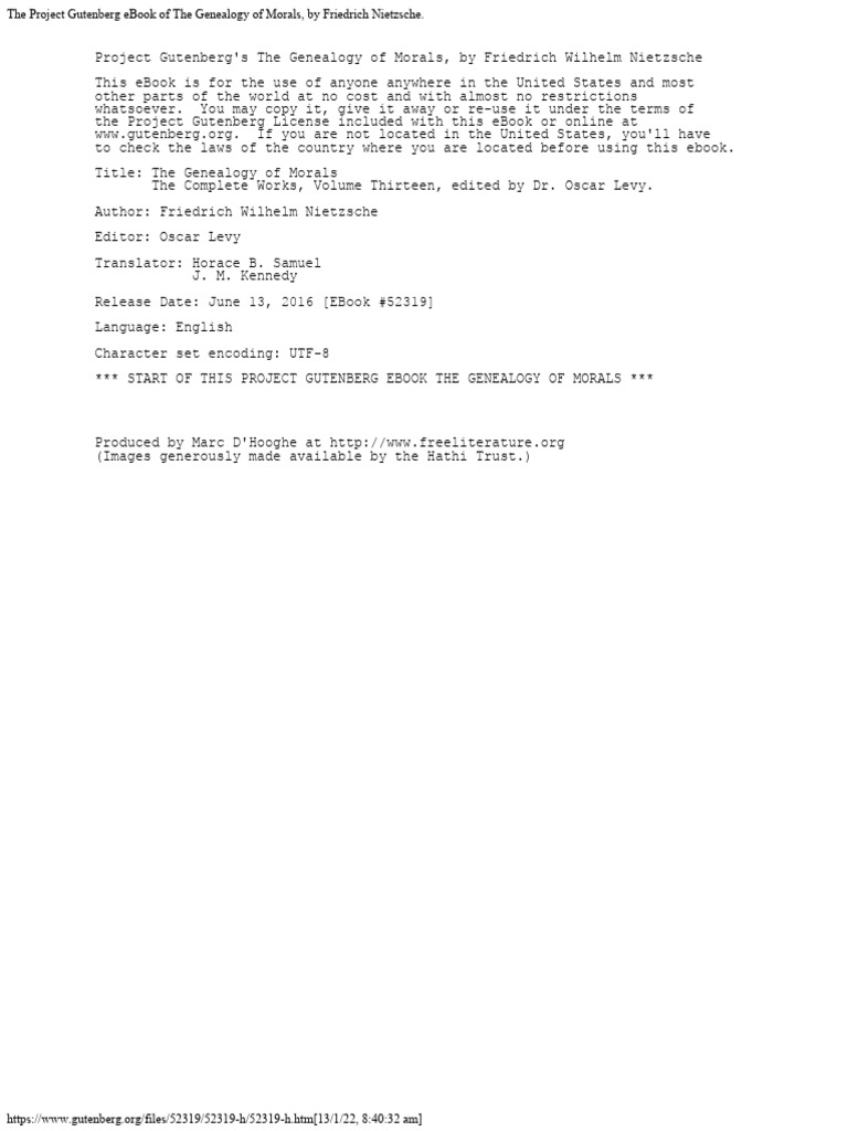 On the genealogy of morals (1887) is nietzsche's major work on ethics. Explore his critique of christianity, his concept. Read the full text of nietzsche's polemical tract on the origin of moral prejudices and values. The genealogy of morals by friedrich wilhelm nietzsche is a philosophical polemic written in the late 19th century. Topics nietzsche, metaphysics, philosophy collection opensource language.