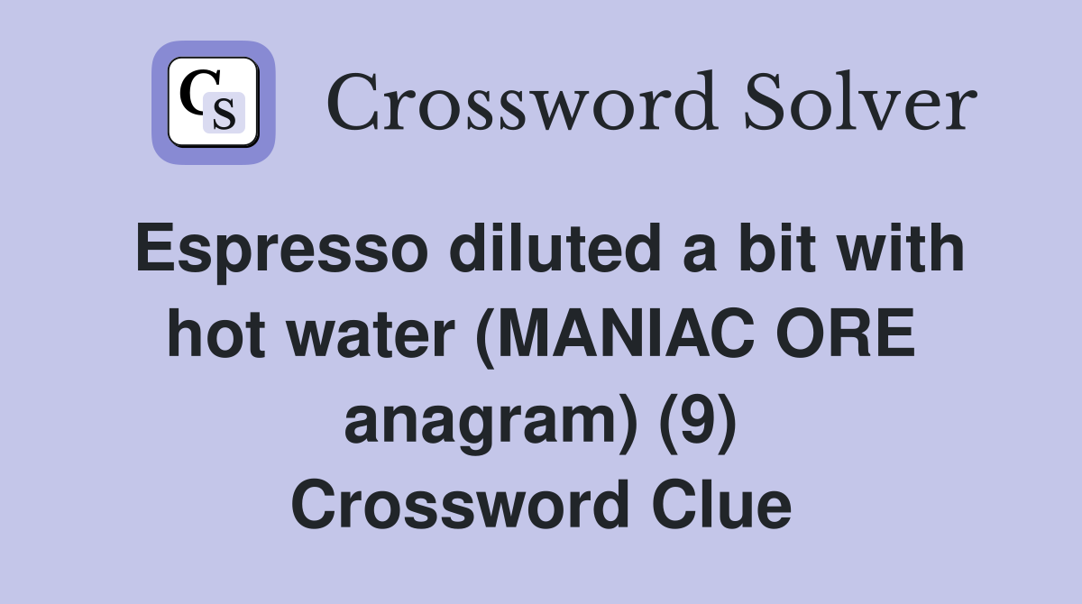 Espresso diluted a bit with hot water (MANIAC ORE anagram) (9