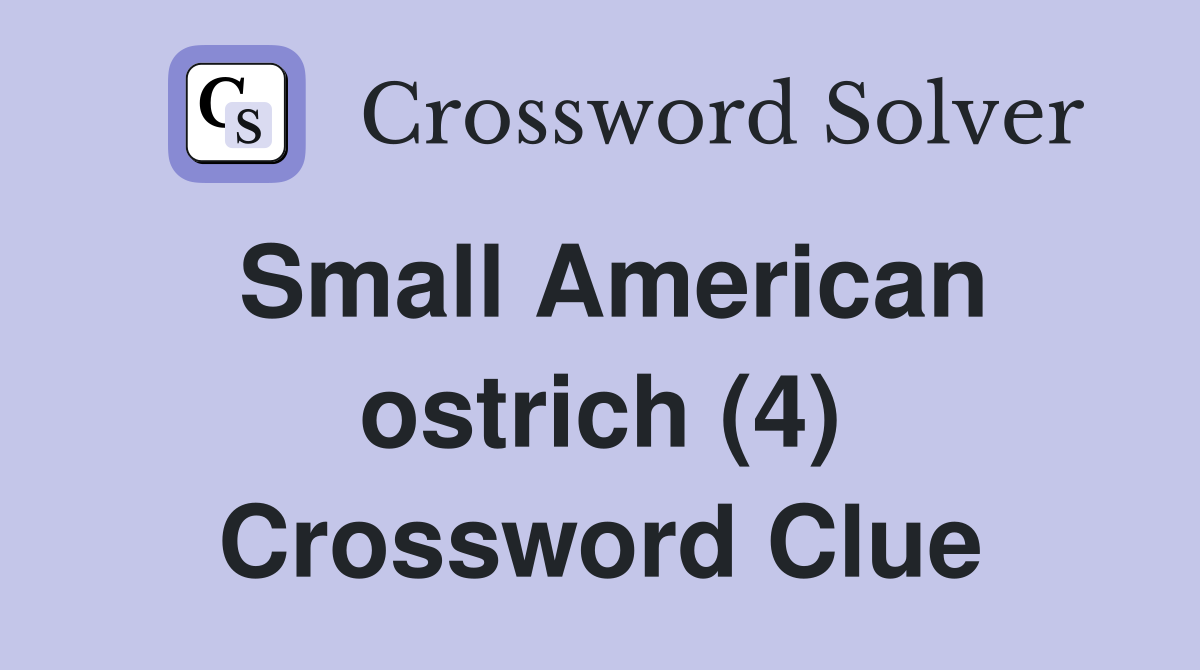 Small American ostrich (4) Crossword Clue Answers Crossword Solver