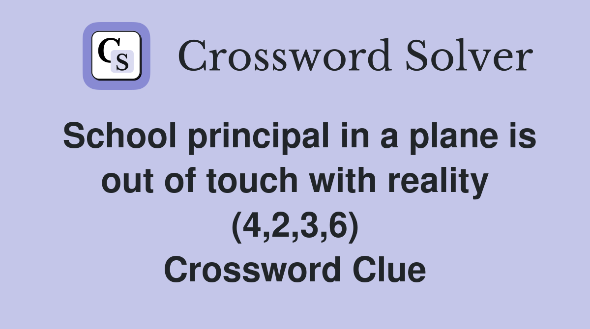 We have 4 solutions to the crossword puzzle out of touch with reality. Out of touch with reality is a crossword puzzle clue that we have spotted 10 times. Here are the possible solutions for out of touch with reality clue. Ny times, daily celebrity, telegraph,. The crossword solver found 30 answers to out of touch with reality (6 4),.