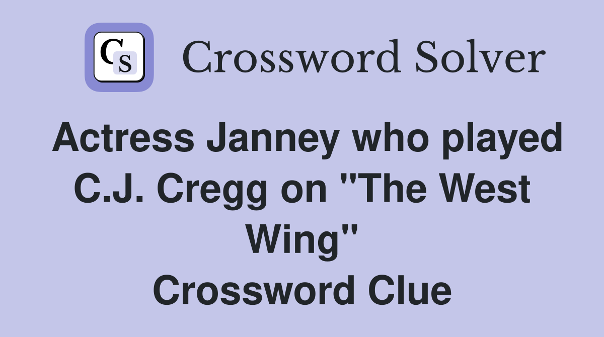 Actress Janney who played C.J. Cregg on "The West Wing" Crossword