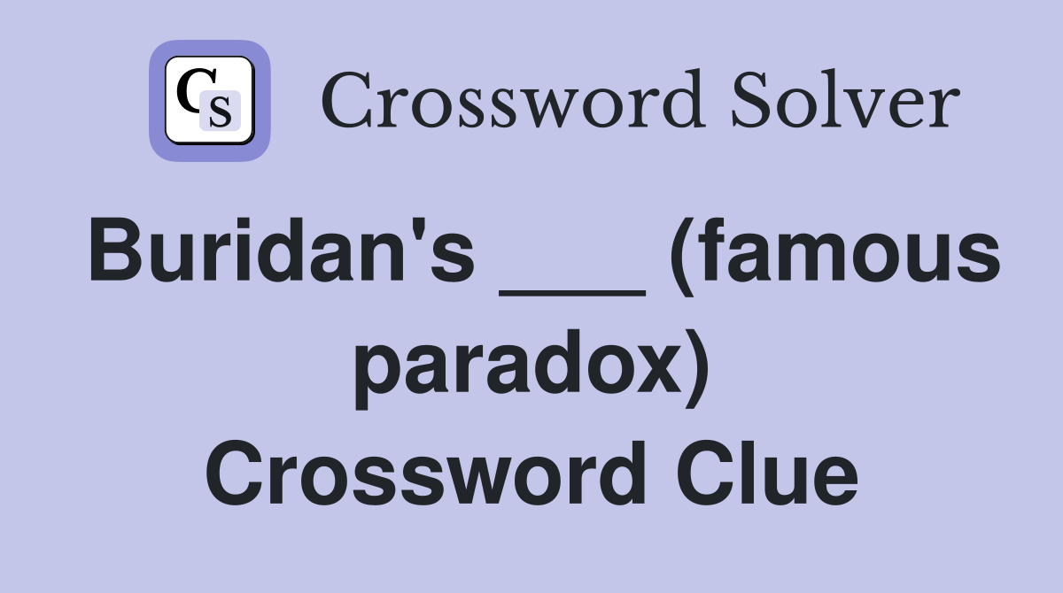 Buridan's ___ (famous paradox) Crossword Clue Answers Crossword Solver