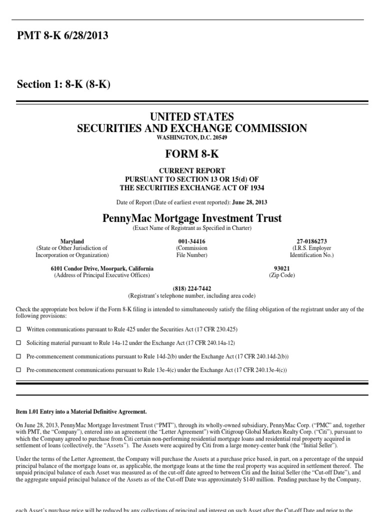 PennyMac Mortgage Investment Trust PDF Citigroup Bonds (Finance)