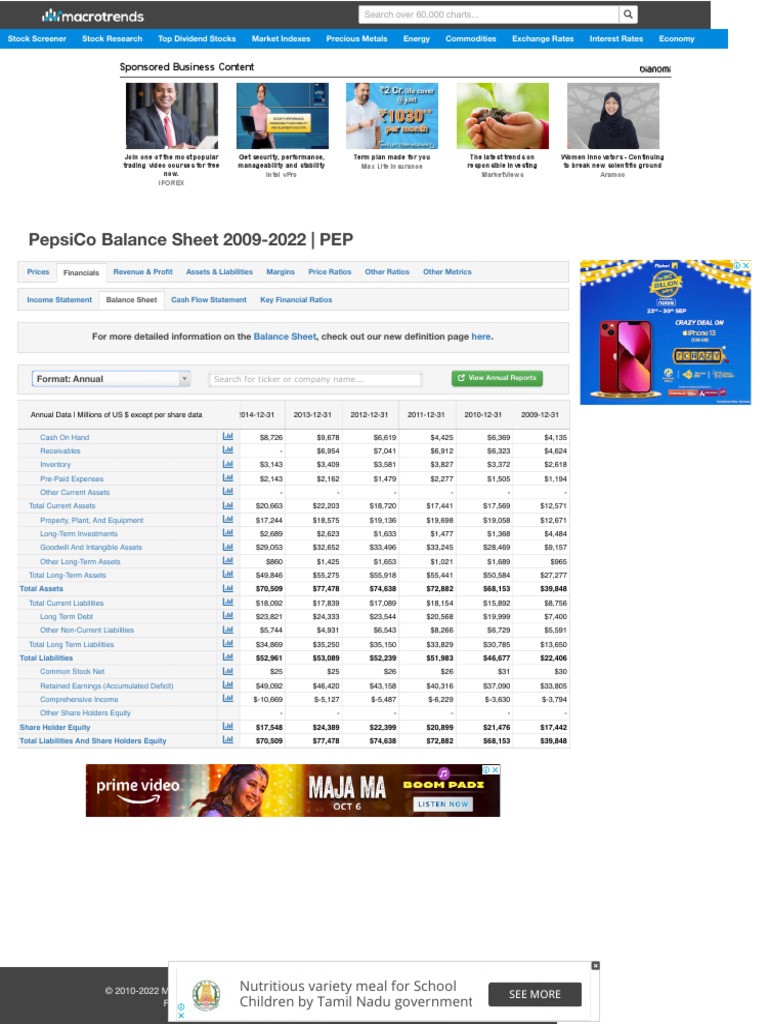 PepsiCo Balance Sheet 20092022 PEP MacroTrends PDF Financial