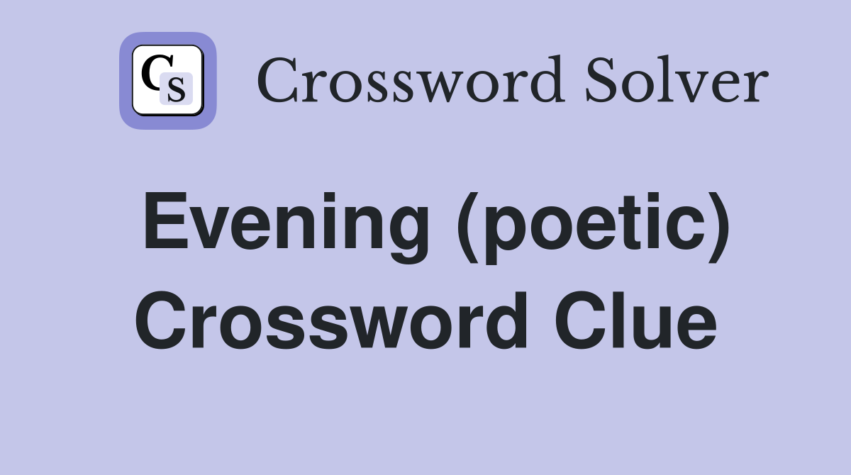 Solve your poetic evening crossword puzzle fast & easy. Find 10 possible answers for the crossword clue poetic evening, such as een, ode, morn, tie, soiree, and more. The crossword solver finds answers to classic. This crossword clue was last seen on october 3 2024 daily. The crossword solver found 30 answers to poetic evening, 4 letters crossword clue.