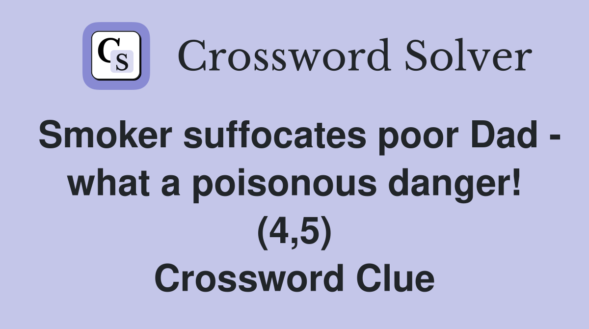 Smoker suffocates poor Dad what a poisonous danger! (4,5) Crossword