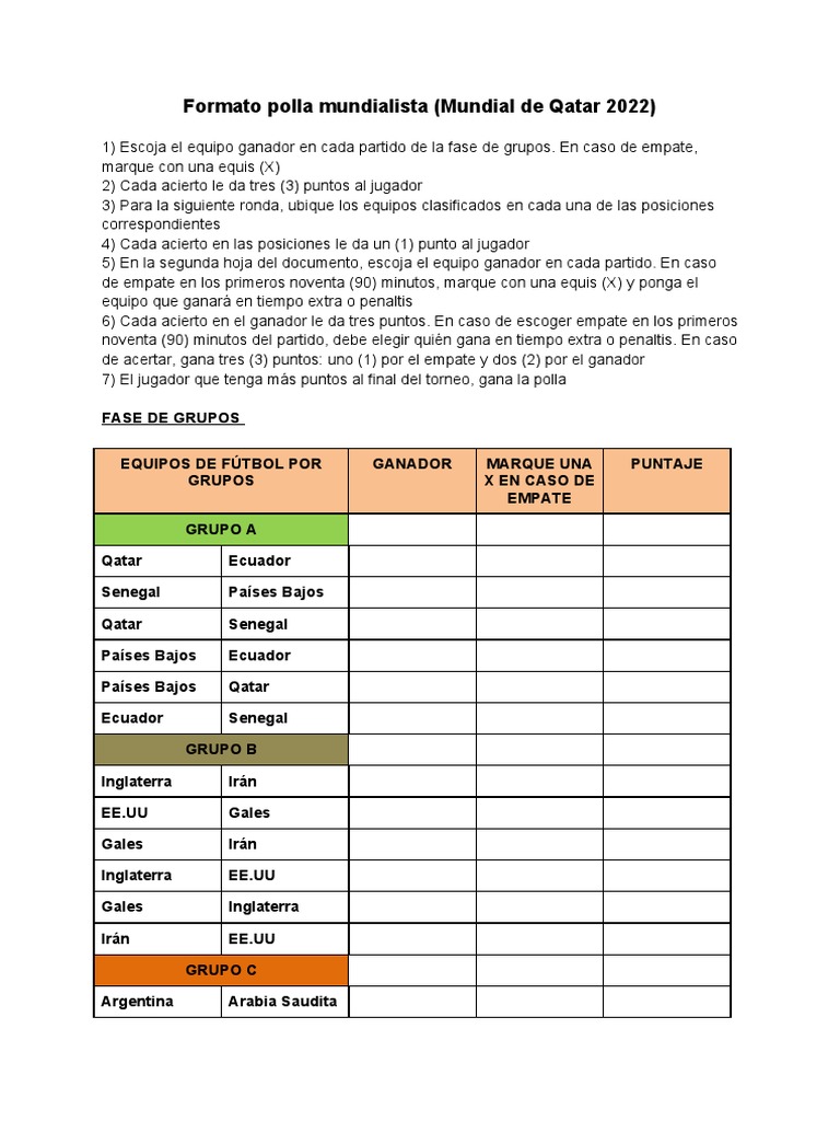 Polla Mundial Qatar 2022 ÁGREDA PDF Equipos deportivos