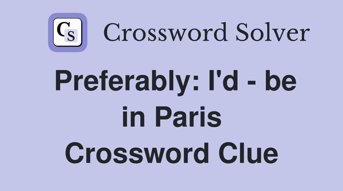 Preferably I'd be in Paris Crossword Clue Answers Crossword Solver
