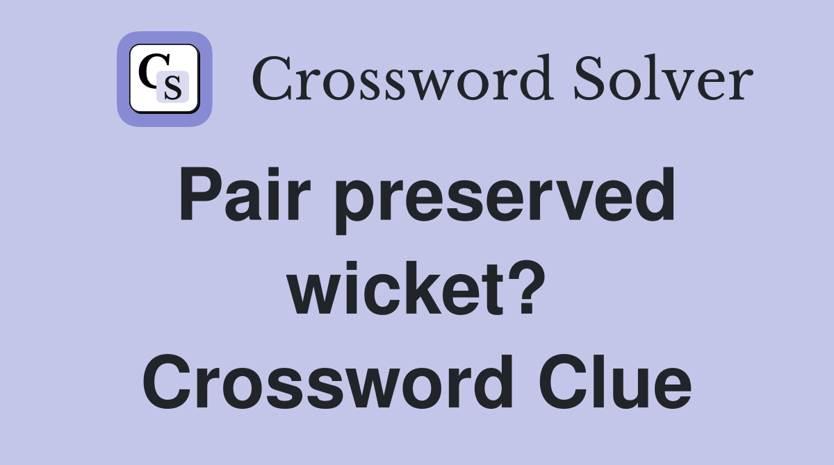 Pair preserved wicket? Crossword Clue Answers Crossword Solver