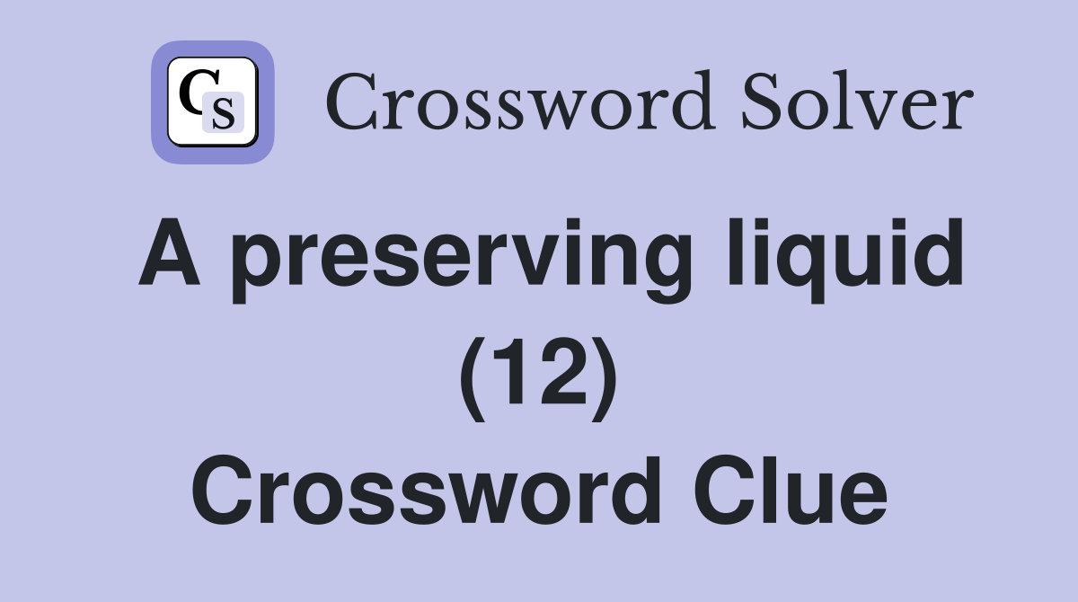 A preserving liquid (12) Crossword Clue Answers Crossword Solver