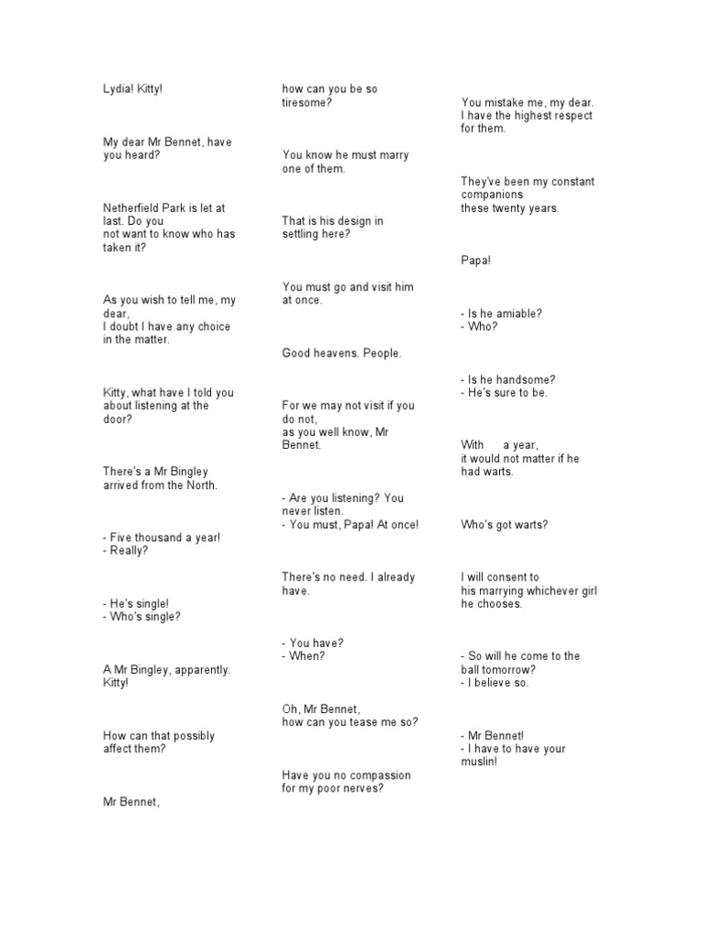 Pride and Prejudice Script PDF Mr. Darcy Pride And Prejudice