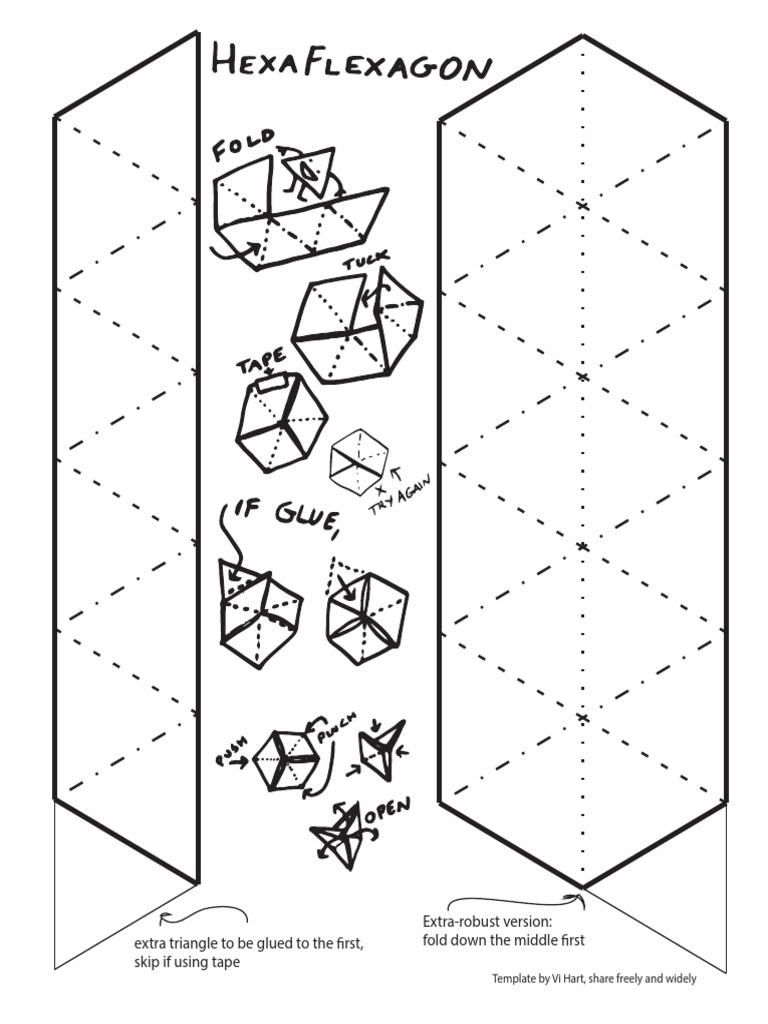 You can easily download and print a hexaflexagon template for free! Unfold, and fold again as. Cut out along solid lines. Fold along mountain and valley folds according to origami notation at the bottom of the page. 1.!cut out the template and crease the lines. Hexahexaflexagon blank template instructions 1. Later, you can erase the pencil. Cut out the template & lightly label it with pencil as shown below.