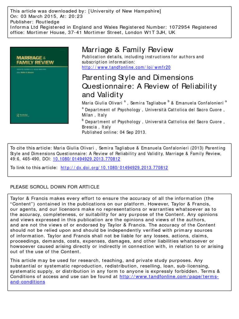 Parenting Style and Dimensions Questionnaire PDF