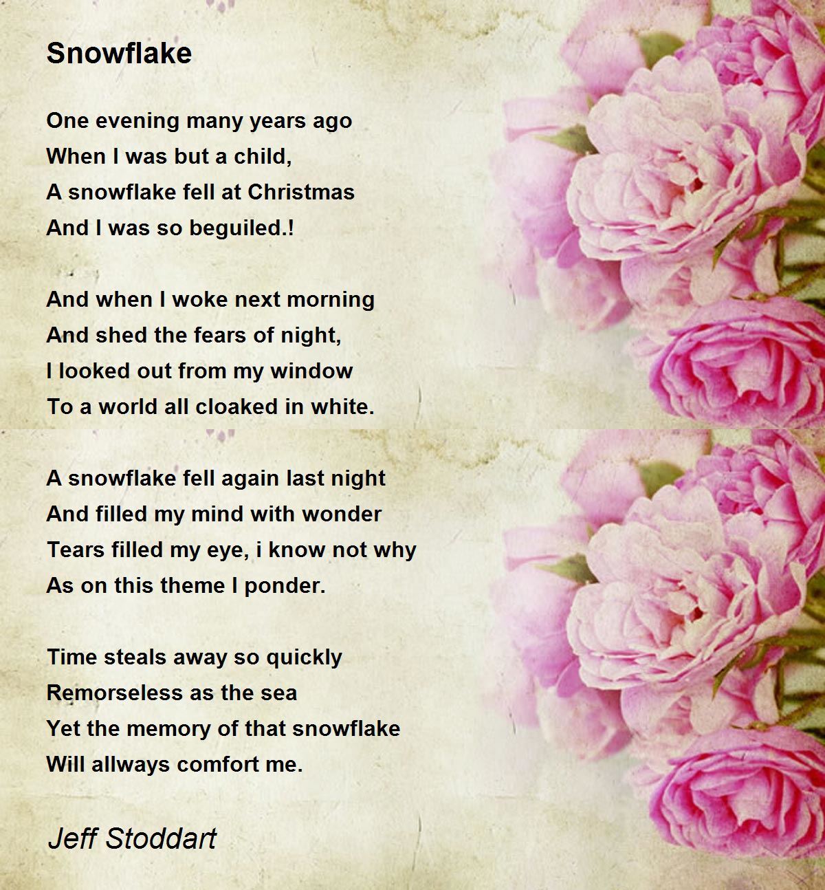 Snowflake Poem by Jeff Stoddart Poem Hunter