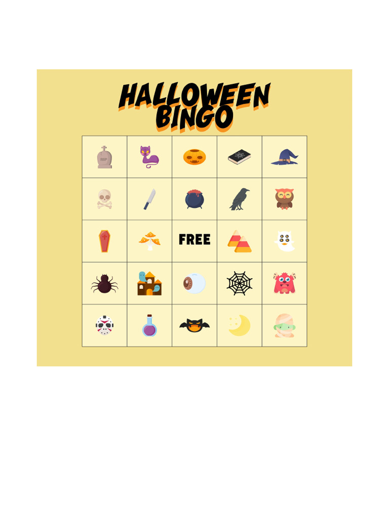 Free halloween bingo card game from prepared not scared! This link will take you directly to a pdf file that has 12 halloween bingo cards. There are also two blank cards at the end that can be printed and turned into whatever. Larger quantities from 10 to 50 additional bingo cards are available in my printable store. Instead of numbers,.