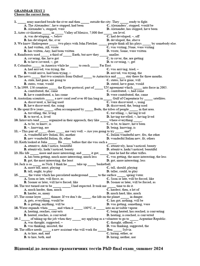 Assess your knowledge of verb tenses, sentence structure, and more. Boost your grammar skills with 5 free printable grammar tests! Download the best grammar tests for english with answers in pdf format for free.