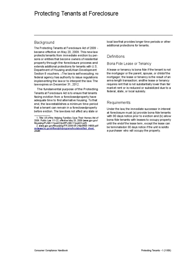 Protecting Tenants at Foreclosure Act of 2009 Foreclosure