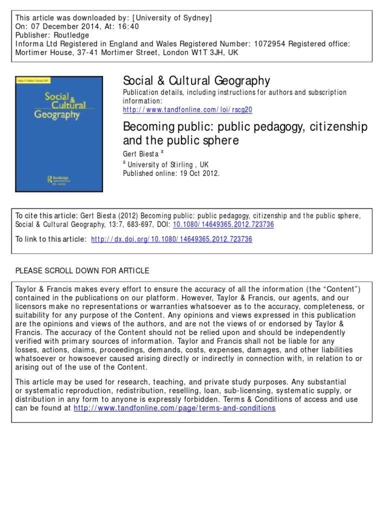 BIESTA Public Public Pedagogy, Citizenship and The Public